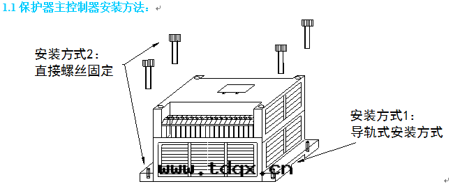 ②对(duì)準螺丝(sī)孔位(wèi)置,用(yòng)2个Φ5mm的(de)长(cháng)螺釘将保護器固定(dìng)在(zài)櫃內(nèi)。