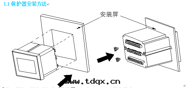 ②对(duì)準螺丝(sī)孔位(wèi)置,用(yòng)2个Φ5mm的(de)长(cháng)螺釘将保護器固定(dìng)在(zài)櫃內(nèi)。