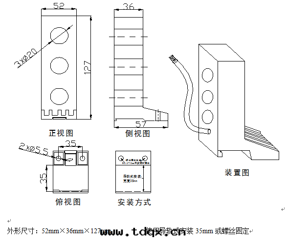 1)、A型CT模块(kuài)的(de)尺(chǐ)寸(cùn)图(tú)如(rú)下(xià)(适用(yòng)于(yú)電(diàn)動(dòng)機(jī)額定(dìng)功率>50kW)