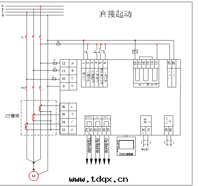 2、 直(zhí)接起(qǐ)動(dòng)方(fāng)式接線(xiàn)原理图(tú)