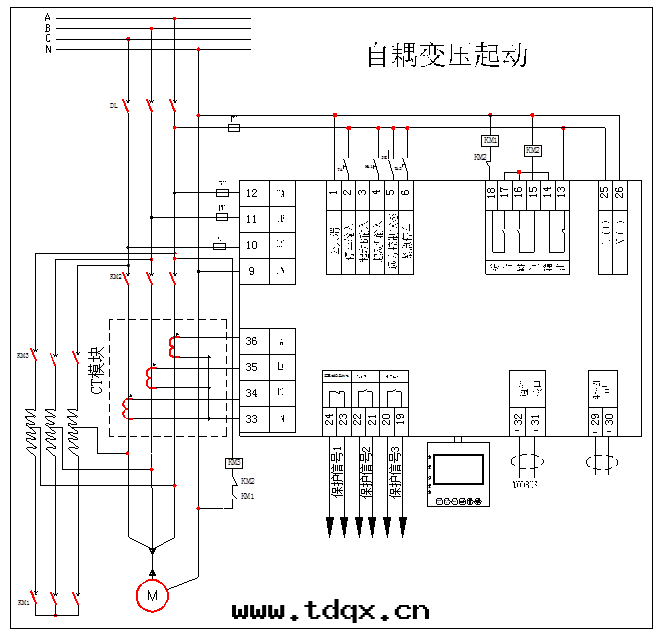 6、 自(zì)耦變(biàn)壓器起(qǐ)動(dòng)方(fāng)式接線(xiàn)原理图(tú)