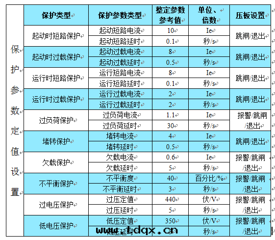 ★ 常規保護定(dìng)值參數表(biǎo)格