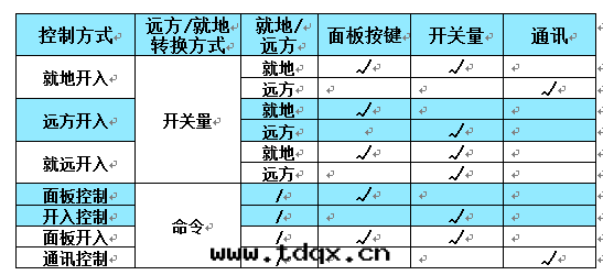 控制方(fāng)式权限对(duì)照表(biǎo):